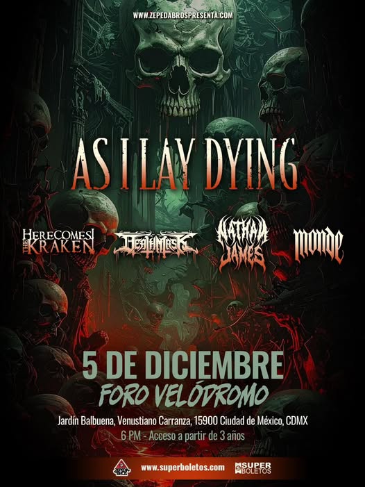 Con más de dos décadas redefiniendo el metalcore a nivel mundial, la banda estadounidense regresa a México con una alineación sólida, un sonido más contundente y una presencia escénica que promete sacudir a la CDMX. A lo largo de su trayectoria, As I Lay Dying ha consolidado un legado marcado por riffs demoledores, baterías implacables y letras que conectan profundamente con varias generaciones de fans. Su regreso a los escenarios mexicanos no solo representa una nueva etapa para la agrupación, sino también una oportunidad única para el público de presenciar un show renovado, pulido y cargado de la intensidad que los ha convertido en una referencia obligada dentro del género
