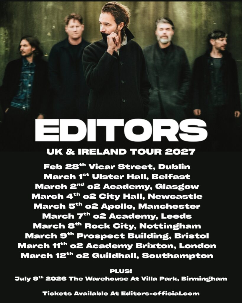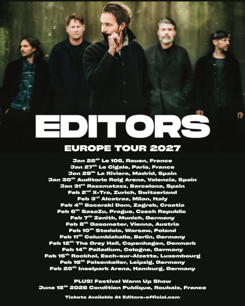 A lo largo de más de dos décadas, Editors ha demostrado que reinventarse también puede ser una forma de permanencia. Sin miedo a explorar nuevas atmósferas y matices sonoros, la banda se ha consolidado como una de las propuestas más queridas y aclamadas del Reino Unido, tanto en casa como alrededor del mundo.