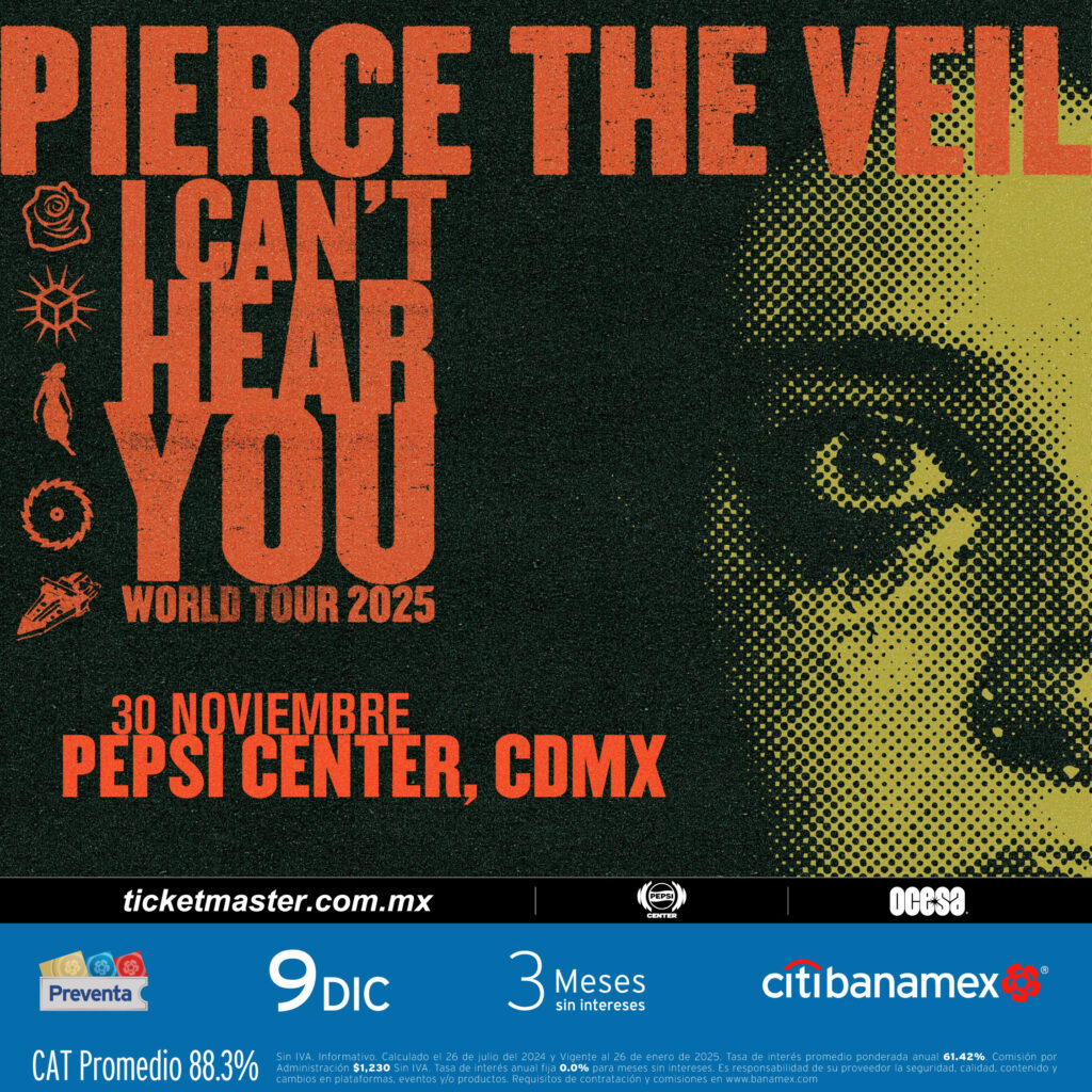 Pierce The Veil está listo para desatar toda su energía en la Ciudad de México como parte de I Can’t Hear You Tour, su gira global más ambiciosa en casi dos décadas de trayectoria. Después de consolidarse como uno de los actos más potentes del post-hardcore y de acompañar a blink-182 en su tour veraniego, la banda de San Diego coloca a la CDMX entre las paradas clave de este nuevo capítulo.